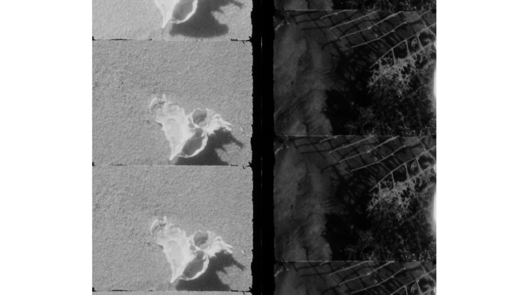 Inspired by Bill Brown and Thomas Comerford’s ‘Chicago Detroit Split’ (2005), Ochlockonee Split deploys unslit double 8mm film to traverse the span of Ocklockonee Bay on Florida’s gulf coast. A sonic collage of local field recordings and a handheld, malfunctioning camera capture a fragmented portrait of the estuary at low tide–where the boundaries between land & sea, life & death, growth & decay, and our own sense of spatial orientation briefly collapse across the brackish water held between dueling images.